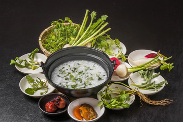 特にNZで手に入りやすいウォータークレスは、独特の苦味と香りがセリに似ていて、お粥に入れると本格的な味になります。